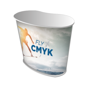 Fabric: De Fabric beursbalie heeft een moderne uitstraling en is perfect te combineren met een presentatiewand. Beide hebben een strak en hoekig design waardoor ze goed bij elkaar passen. De beursdesk Fabric is een eenvoudig uitklapbaar systeem. De print wordt geproduceerd op een textieldoek die door middel van klittenband aan het frame wordt bevestigd. Zo zit deze er mooi strak om heen en is de balie snel opgebouwd. Het formaat van de print is 165,5 cm bij 100 cm. Het gewicht van de beursbalie is 13 kg. De afmeting van de balie is als volgt: Breedte 106 cm, hoogte 100 cm, diepte 40 cm.